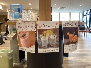 今月は栄養士プロデュースによるフレッシュジュース屋さんをOPENいたしました。