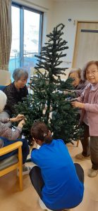 西ノ京も冬景色 2022.12.14 ガーデン西ノ京 こんにちは ハッピーガーデン西ノ京です。 さぁ!いよいよ冬到来!!寒くなって参りましたね。 ガーデン西ノ京では着々と冬の飾り付けが始まりましたよ~~(^^♪ もみの木! クリスマス飾りです♪ おっ? 何やら あれやこれや 仰ってワイワイ(^_^)v 素敵な飾りの完成!!! 鈴がなっております♪