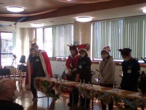 ✨🔔クリスマスハンドベル演奏会🔔✨ 2022.12.26 リハビリ西 こんにちは。 ハッピーデイリハビリ館西ノ京です😊 今週12月25日はクリスマスです🎄 リハビリ館西ノ京でもクリスマスの雰囲気を少しでも味わっていただく為、ハンドベルの演奏をしました🧑🎄🔔 利用者様に楽しんでいただこうと、ハンドベル演奏を行う期間中、スタッフはサンタやトナカイの仮装して1日中過ごしていました😊 一緒に仮装して楽しんでくださる利用者様もいました🎅💕