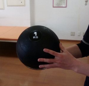 この体操は、砂が入り重くなっているこの黒いボール、名称「メディシンボール⚫️」を使います😁
