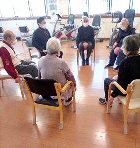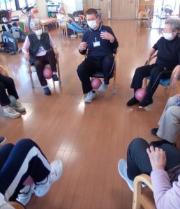 当館の体操では膝を曲げ伸ばしする事で、膝上から太ももの前の筋力を鍛える😁