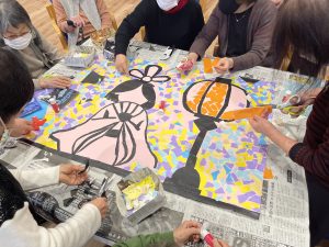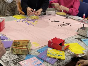 色がついて、とても華やかになりました。皆さんとても器用に貼って頂き素晴らしかったです。