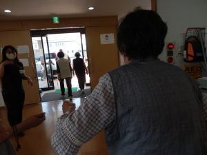 慌てて他利用者様を押したり、転倒しないようにスタッフが声掛けしています。
