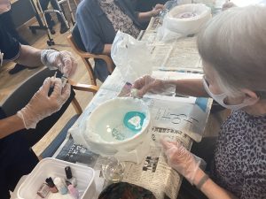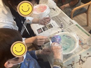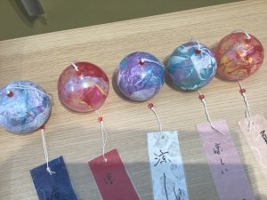風鈴作り 2023.07.15 リライフplus こんにちは!リゾートデイサービスハッピーリライフplusです(^^) リライフplusではレディースデイ限定のレクリエーションを行っています。 前回のレクリエーションでは風鈴作りを行いました! 水の中にマニキュアを垂らし、そこに風鈴をくぐらせて色を付けます。 皆さん綺麗なマーブル模様の風鈴を作っておられました♪ リライフplusの玄関にも作った風鈴が飾られています(^^) 今後も楽しいレクリエーションを行っていきたいと思います!