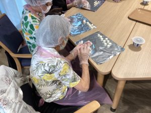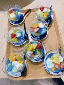 白玉団子作りや、フルーツのカット、寒天の型抜きをしていただきました★☆