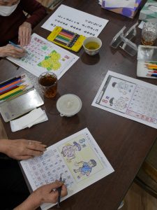 最後に・・・毎月提供しています、カレンダー付き塗り絵(皆様個性的で、味がありますよね)と、夏の1枚です。
