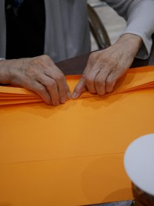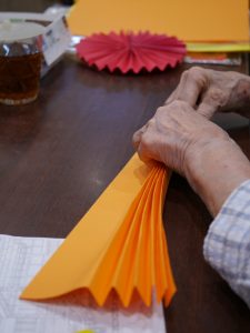 まず画用紙をじゃばら状に折ります。厚みがあるので折るには、けっこう力が要るんです。