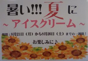 8/21(月)〜26(土)の期間で、楽しいアイスクリームレクリエーションを実施いたします😄