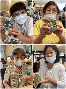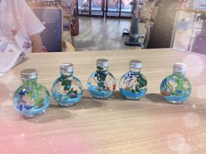 アクアリウム製作🐠 2023.08.24 リライフplus こんにちは! ハッピーリライフplusです。 今月のレディースデーの製作はアクアリウム🐟です。 自分だけの水族館を作ろう!をテーマに 魚や海藻ビー玉を入れて涼しげなオブジェを作っていただきました。 皆様とっても素敵な作品を完成されていました🐠🐠🐠 現在水曜日の要支援女性枠に空きがあります。 ご興味ある方はいつでもお問合せくださいね♪