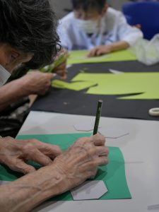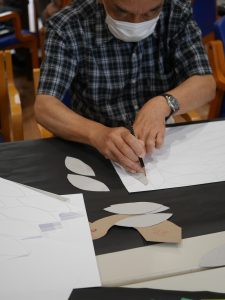 先月はペーパーファンと首飾りを作って頂きましたが、今回は飾り付けに使う、あの縁起のいい動物を作って頂きました。