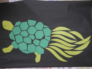 亀は、甲羅に見えるように、少しづつ形を変えて切り合わせながら作りました!