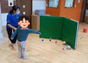 ボールを両手で転がしたり、片手で投げてもらったりと投げ方を変えながら投げてもらいました。