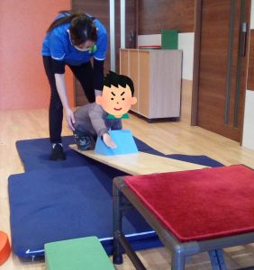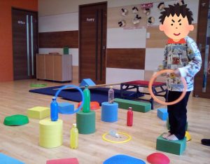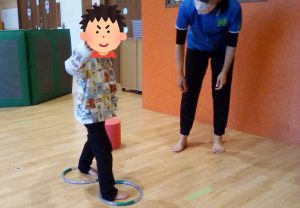 さて、今月の集団療育では、サーキット遊びの中にフープを取り入れ、遊んでもらいました。