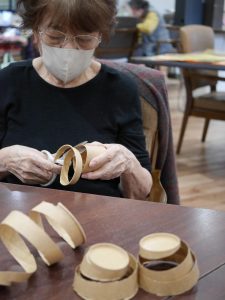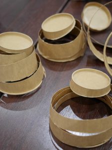 まず、茶色い紙コップを細く切っていきます・・・(紙コップの色は白より、茶色の方が雰囲気が出ますよ)