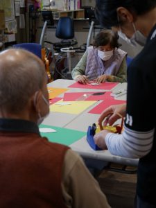 ↑なるべく多く画用紙に書こうと工夫して型取ってくださり、いつも有難いです!(*^^*)
