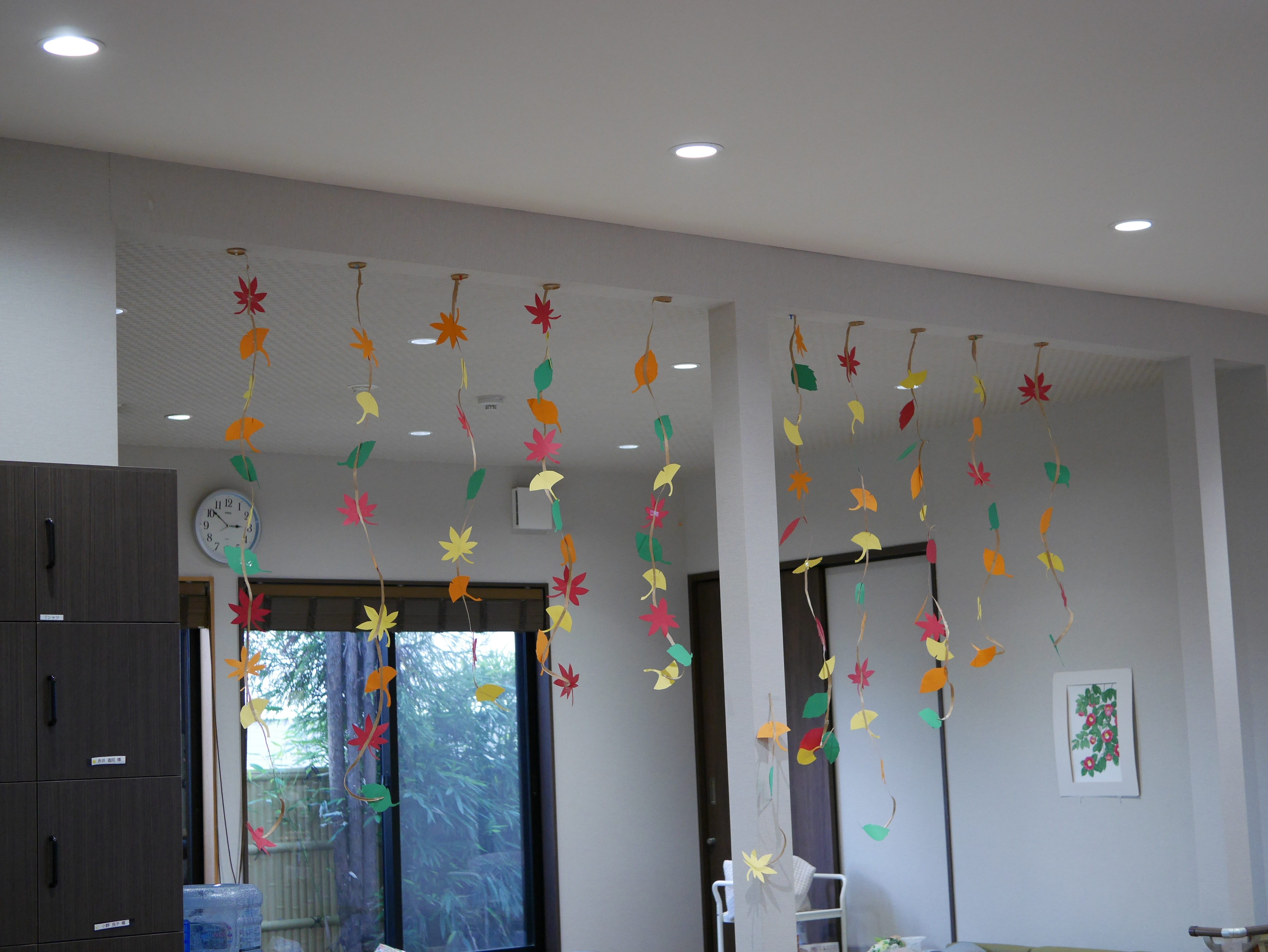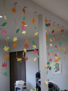 フロアの高い天井から吊り下げると、また一段と映えて、リライフ全体に秋が訪れたようです(*^^*)