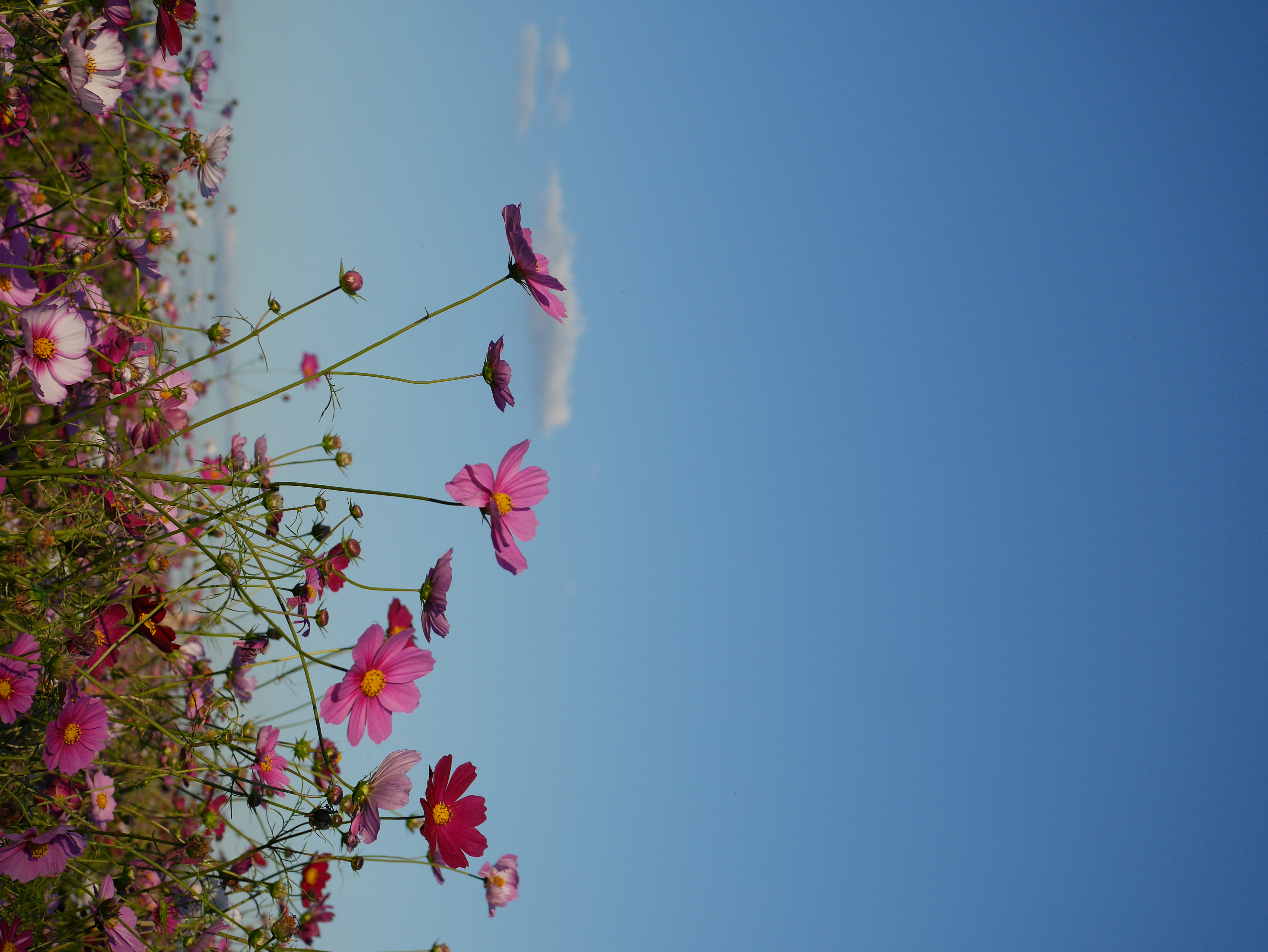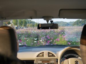優しい色のいろいろなコスモスが一面に咲いていて、気候もドライブにはちょうど良く