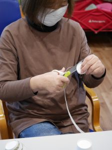 仲良しの女性利用者様にお願いすると「先生、任せてください!」と力強く言ってくださり、「星はここがいいかな?」「赤ばっかりだから、白もここに入れたらどう?」など利用者様同士で相談しながら取り組んでくださりました!