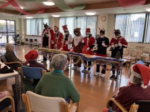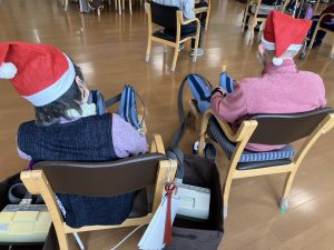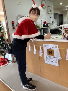 利用者様にもクリスマスの雰囲気で楽しんでもらおうとに、サンタやトナカイの仮装を一緒にしていただきました🎅🫎