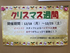 当館でも季節を感じて利用者様に季節を感じていただけるようにとの思いで、12/18(月)〜12/24(土)の間クリスマスレクリエーションを実施しました🌲