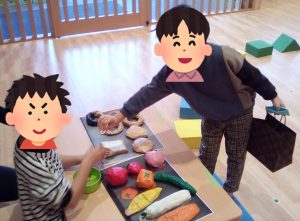 さて、今月最初の集団療育では、お買い物遊びをして遊びました!