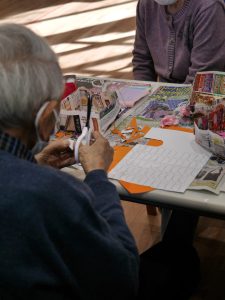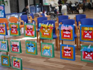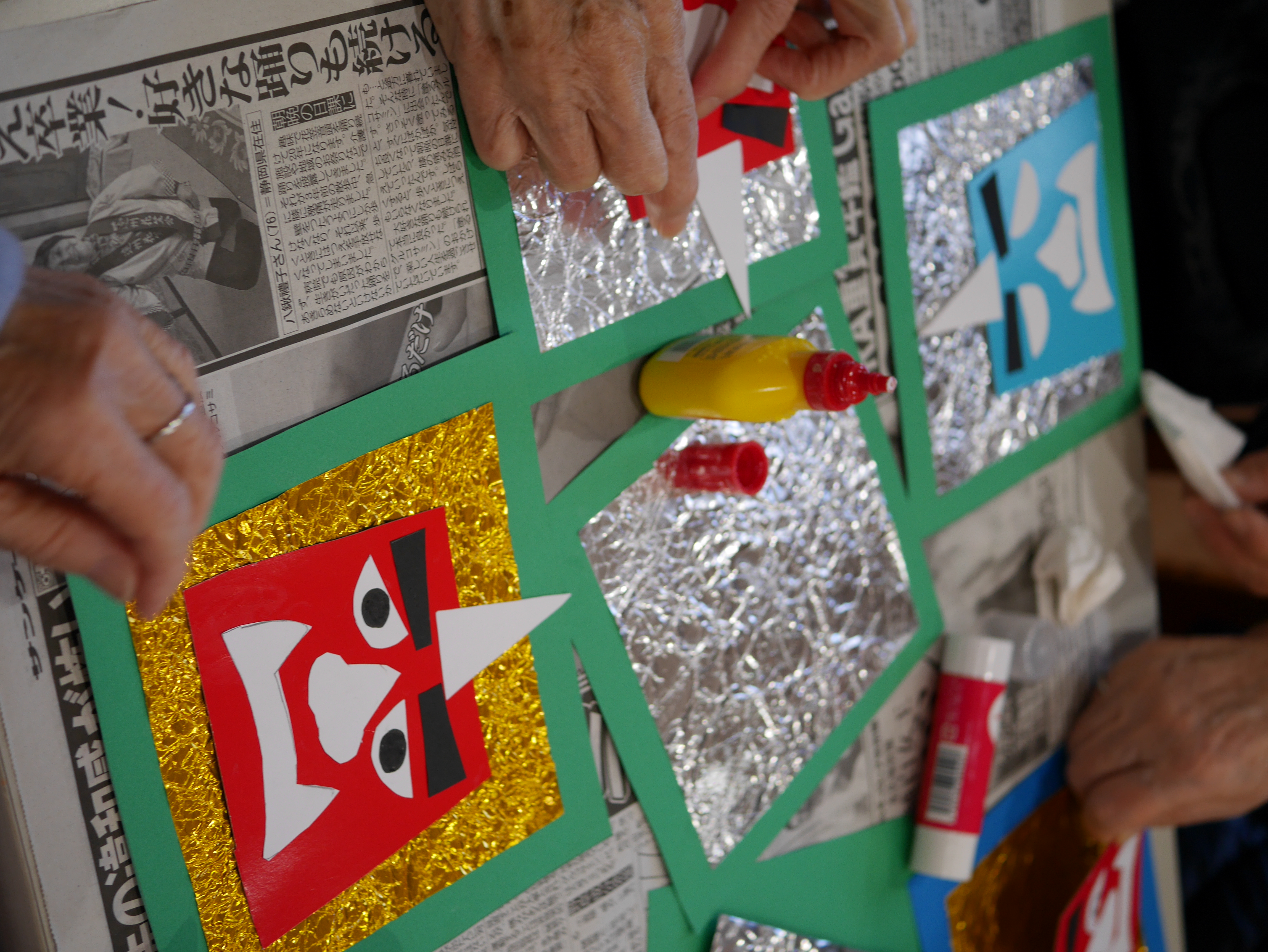 角、眉毛、目、鼻、キバ、耳、輪郭・・・特に鼻のパーツは、形もいびつで、すごく書きにくかったと思いますが、手先の器用な利用者様が多く、本当に助かりました。