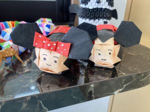 それからお隣には有名なキャラクター、ミッキーとミニーの折り紙もいますよ😜🎶