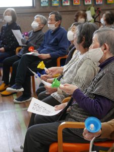 皆様歌うのがお好きなので、今回は歌うところを長く、ハンドベルはサビの部分だけ奏でていただきました。