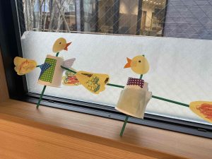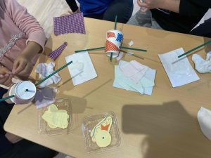身体の部分に折り紙をちぎっておしゃれな服も作りました。