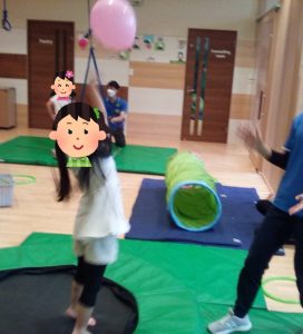 さて、今月の集団療育では風船やボールを使ったサーキット遊びをしました。