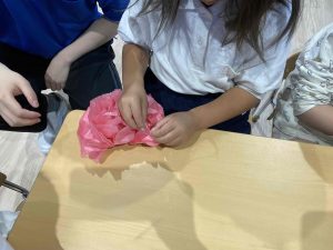 そこにキッチンペーパーを巻いて糊で貼り付けたらおもちの完成!!
