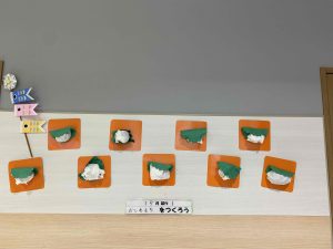 かしわの葉に見立てた画用紙をくしゃくしゃさせて葉っぱらしくしたら