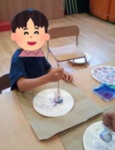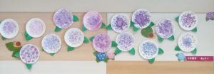 あじさいは台紙の紙皿をタンポで色付けして作りました。