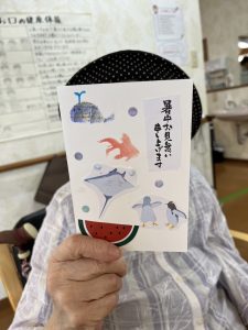 利用者様も「色んなレクリエーションを考えてくれて嬉しいわ、暑中見舞いを書くことも最近なくなっているから、久しぶりで楽しかったよ🥰」っと仰っていました😄