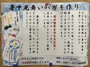6/17(月)~6/22(土)の一週間で暑中見舞いはがきを作成するレクリエーションを実施しました😄