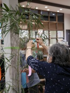 そして七夕当日は、今年もお風呂場から見えるリライフ産の笹を切って、短冊をみなさんに飾っていただきました!
