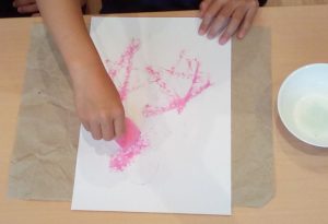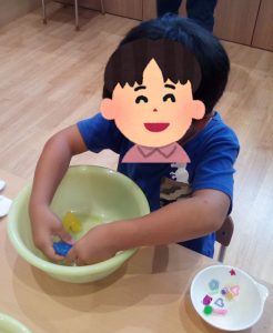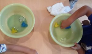 冷たい氷に触るのを躊躇していた子も、周りから「取れた~!」との歓声が上がると、自分も取り出してみたい気持ちになったのか、チャレンジして見事、宝物を取り出すことに成功していました😊