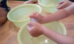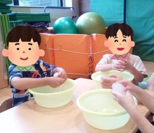 今月の集団療育では、子どもたちに大人気のスライムを使った感触遊びをしました!🌟