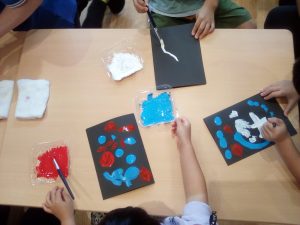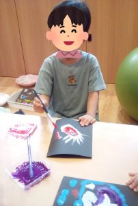 一番盛り上がったのは、画用紙に落とした絵の具を反対側に転写して、再び画用紙を開いて模様を見る瞬間でした!!