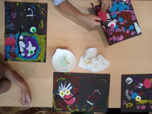 デカルコマニーという手法で、カラフルなモンスターを作って遊びました🎨✨