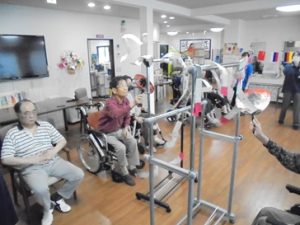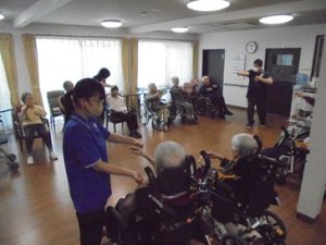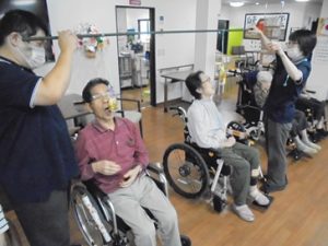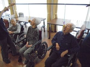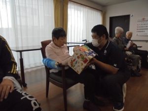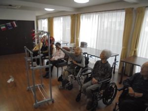 そして、第一種目はうちわを使った運動です。10枚の紙を風で飛ばし切った方の勝ちです。双方白熱したました(@^^)/~~~