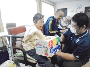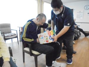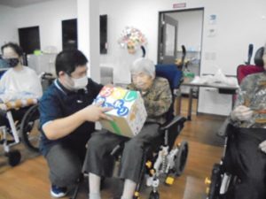 最後、第三種目はお菓子のつかみ取りです。何が出るかな?つかんで見ると中身はお菓子でいっぱい(^_^)/
